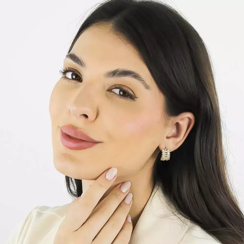 Brinco Click Articulado Zircônia - Banhado a Ouro e Ródio Branco