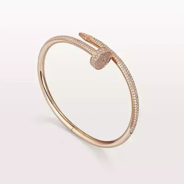 A Pulseira Inspiração Cartier Juste un Clou, banhada a ouro amarelo 18K, é uma peça marcante que reflete originalidade, independência e elegância. Com sua silhueta única, inspirada em pregos, ela quebra convenções e afirma a verdadeira essência de quem a usa: destemida, livre e autêntica.